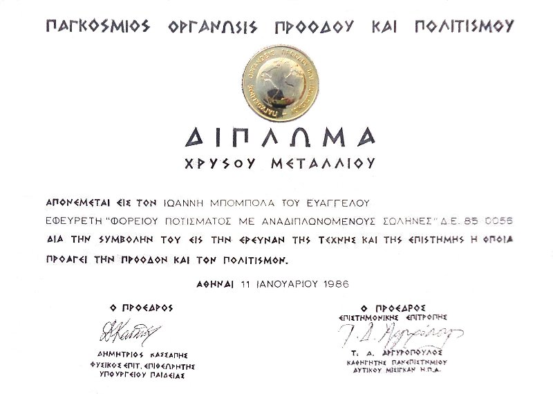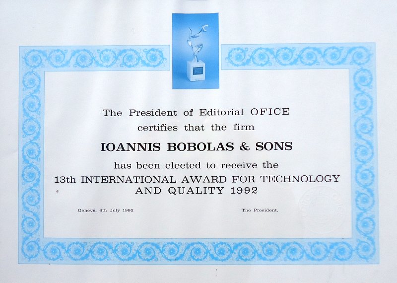 Η εταιρεία μετά από ένα πραγματικά εντυπωσιακό ρυθμό ανάπτυξης, απασχολεί μέχρι και 40 εργαζόμενους, κατορθώνει να κατοχυρώσει πολλές ευρεσιτεχνίες και να αποσπάσει διακρίσεις και βραβεία σε Ελληνικές και διεθνείς εκθέσεις γεωργικών μηχανημάτων. Μάλιστα το έτος 1986 η εταιρεία μας τιμάται με το Δίπλωμα Χρυσού Μεταλλίου από την Παγκόσμια Οργάνωση Προόδου και Πολιτισμού για τη συμβολή της στην έρευνα της τέχνης και της επιστήμης.